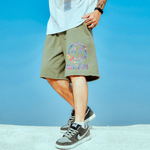 情侣短裤 宽松加肥加大潮牌运动五分裤 胖子纯棉大码 国潮中国风男裤