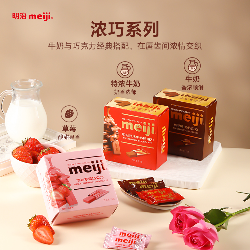 meiji明治巧克力小排块特浓黑巧克力75g片装 牛奶巧独立喜糖伴手礼