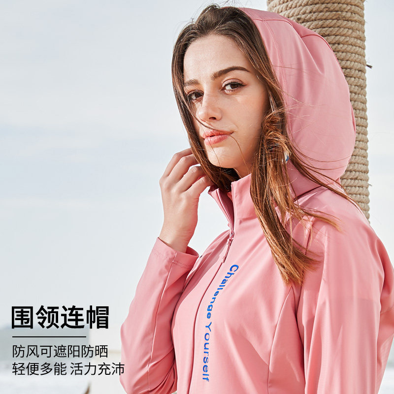 天然体防晒衣女夏季 外套连帽休闲运动跑步速干衣8422 冰爽透气长袖