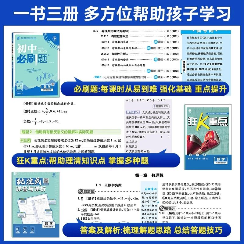 2026初中必刷题上册下册七年级上八九年级数学物理历史化学英语文政治生物人教版 苏教初一二三中考试卷同步练习必刷题七下2025新版