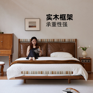 柏林床棕色复古真皮实木软包高端大气头层牛皮主卧1.8 1.5m双人床
