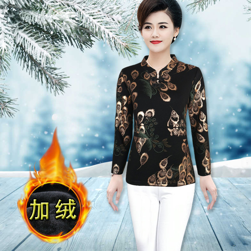 宽松加绒加厚保暖打底衫 韩版 t恤女春秋上衣2020中老年秋冬装 长袖
