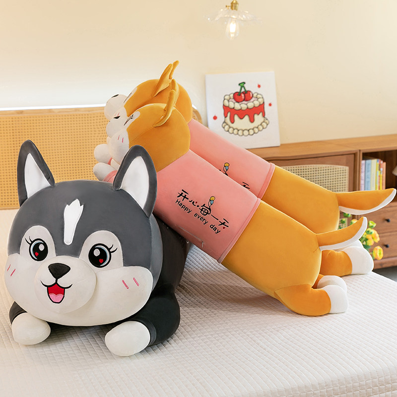 可爱哈士奇毛绒玩具柴犬狗狗玩偶大号二哈长条睡觉抱枕男生款 夹腿