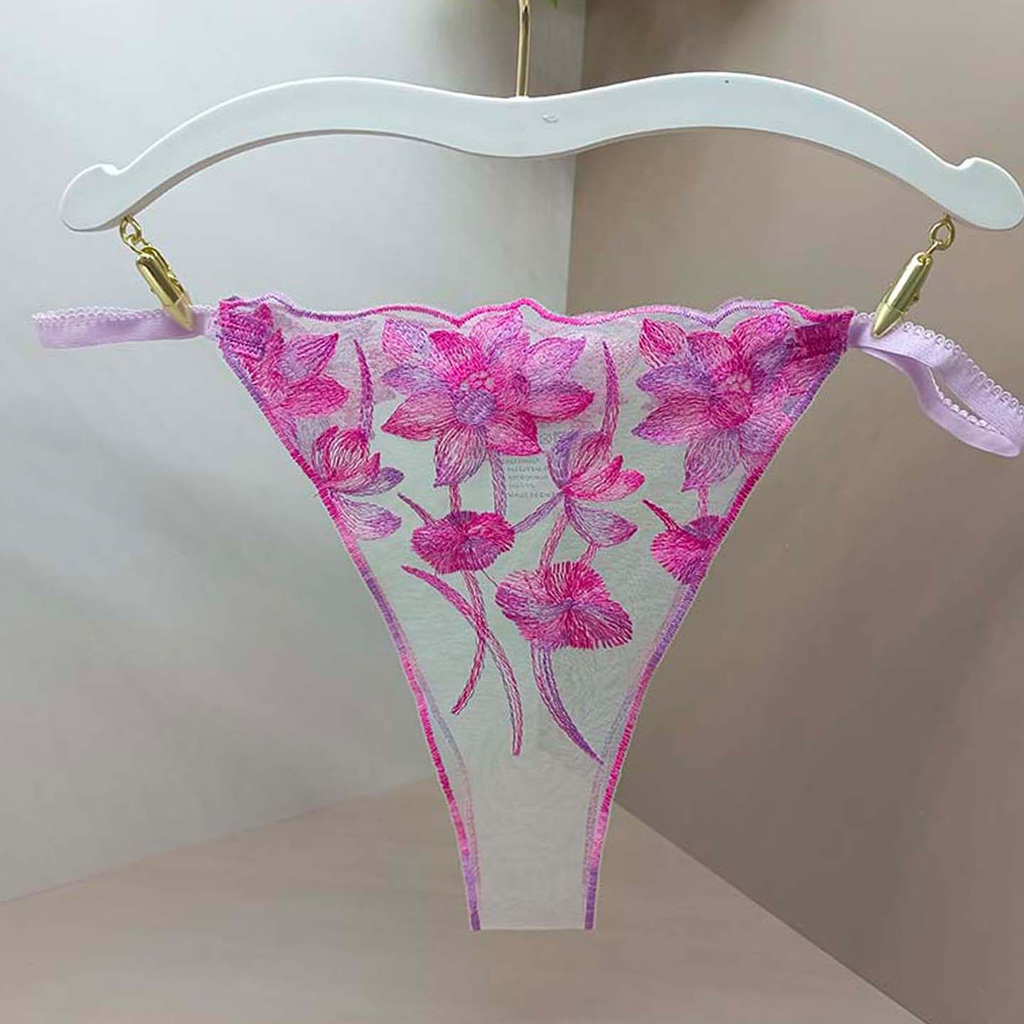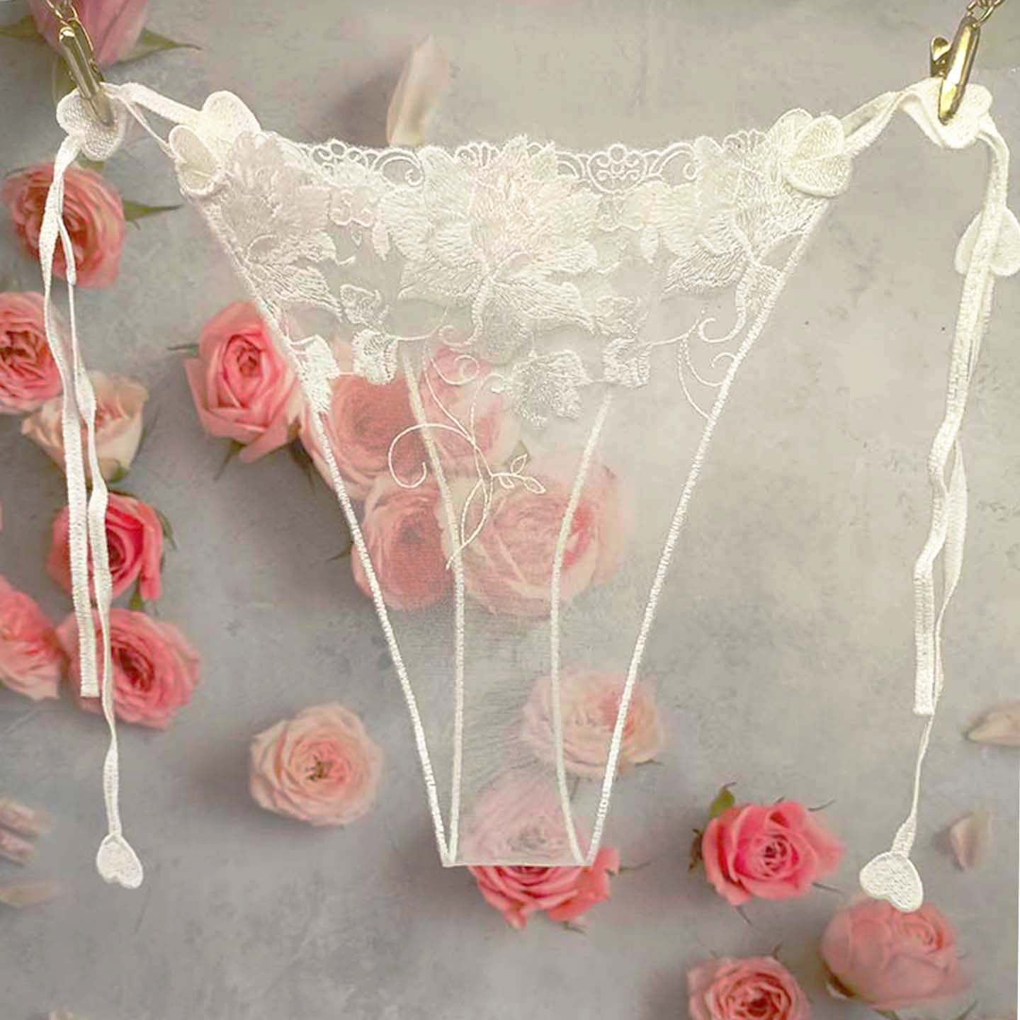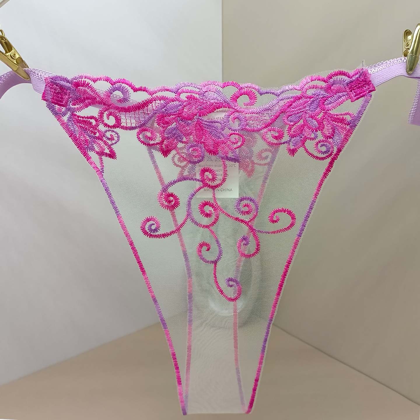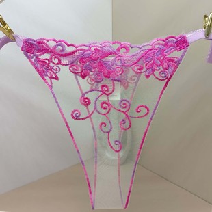 2025新款 内裤 性感丁字裤 全透明无痕情侣****花卉刺绣时尚 女T字裤