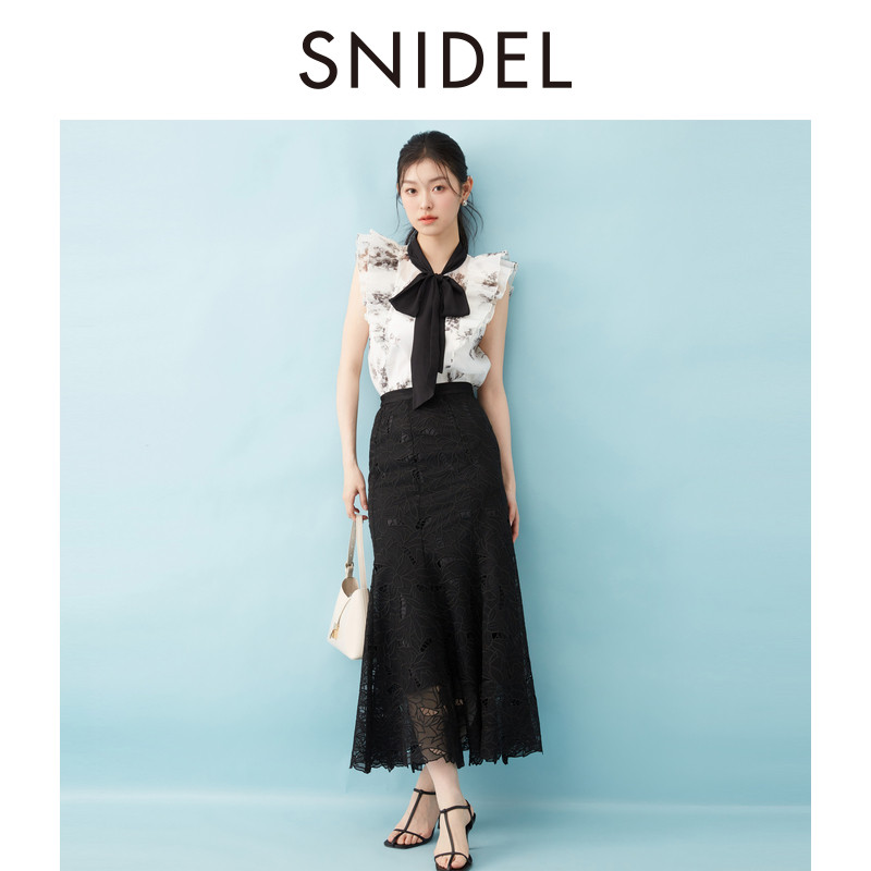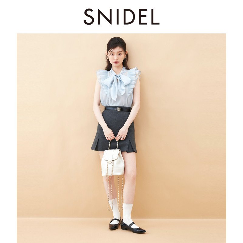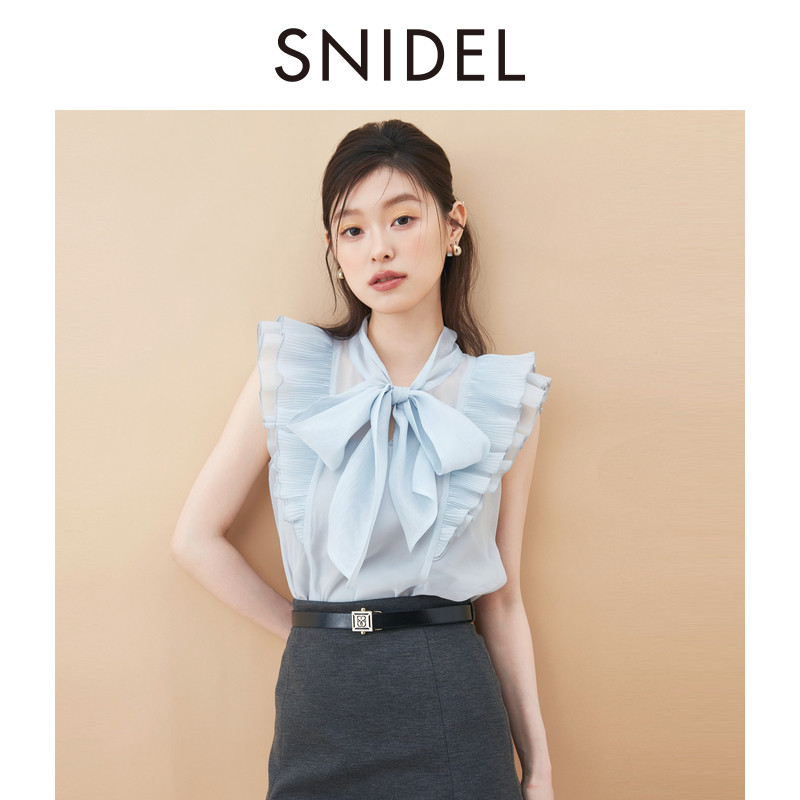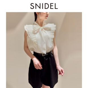 上衣SWFB254030 蝴蝶结衬衫 SNIDEL2025秋冬新品 优雅荷叶边小飞袖