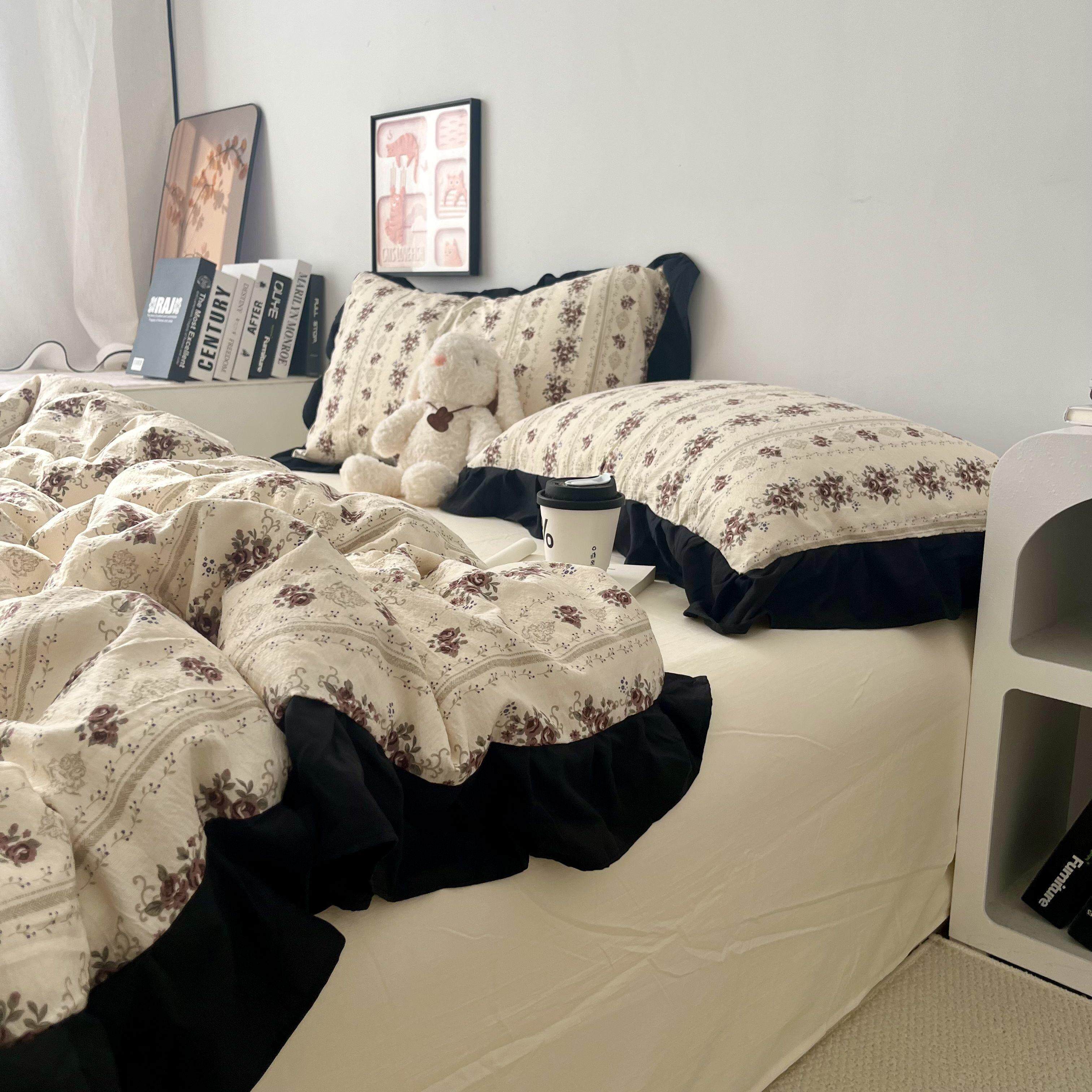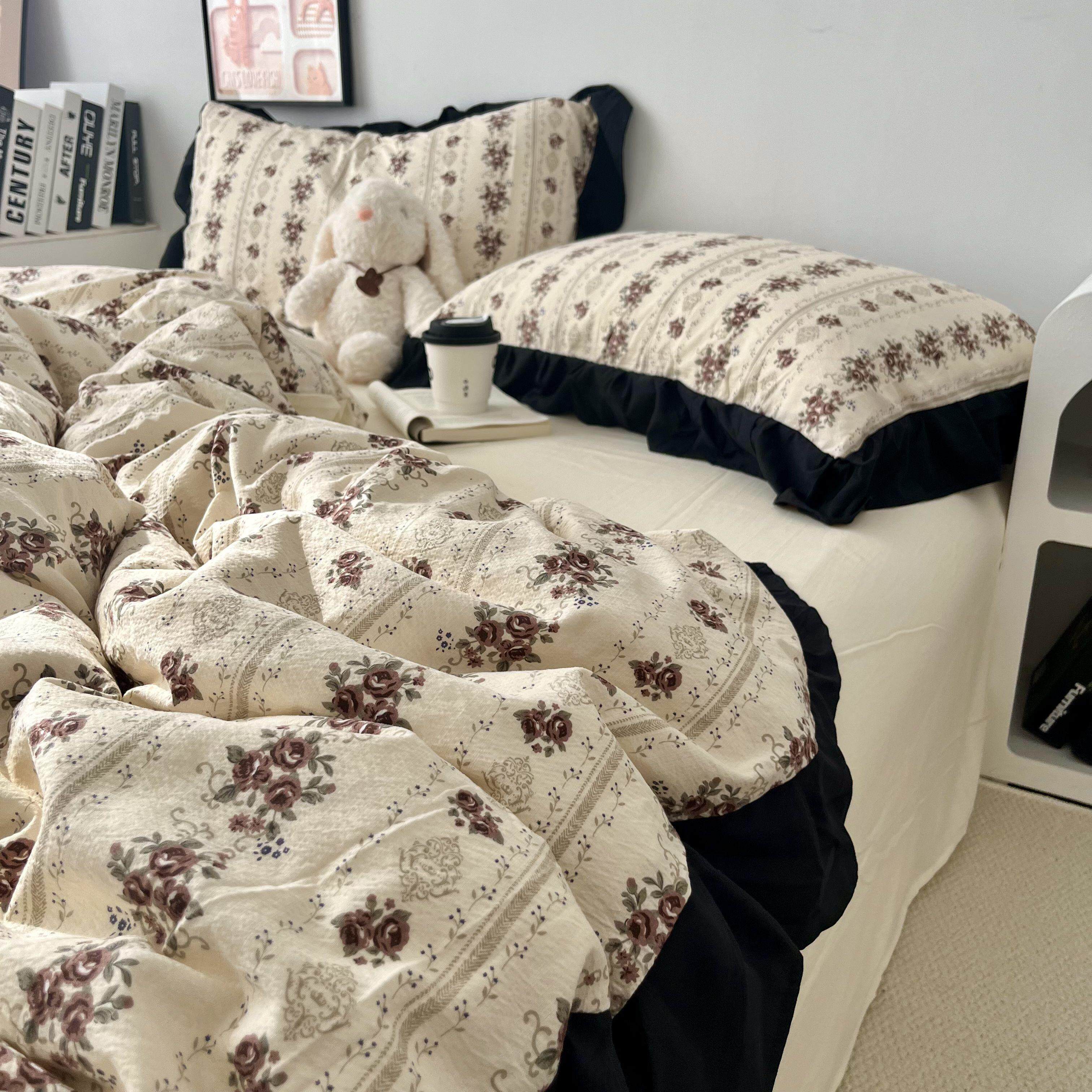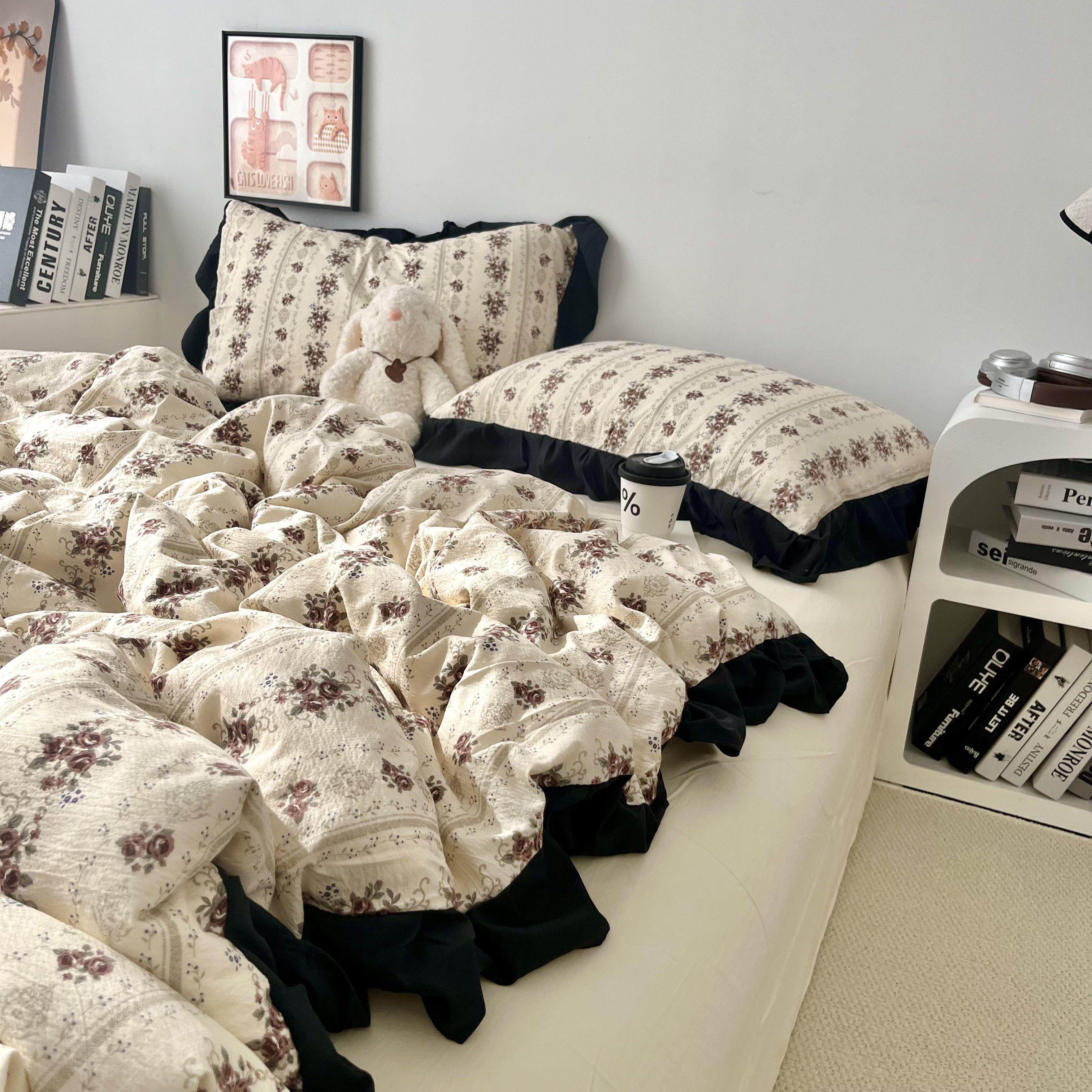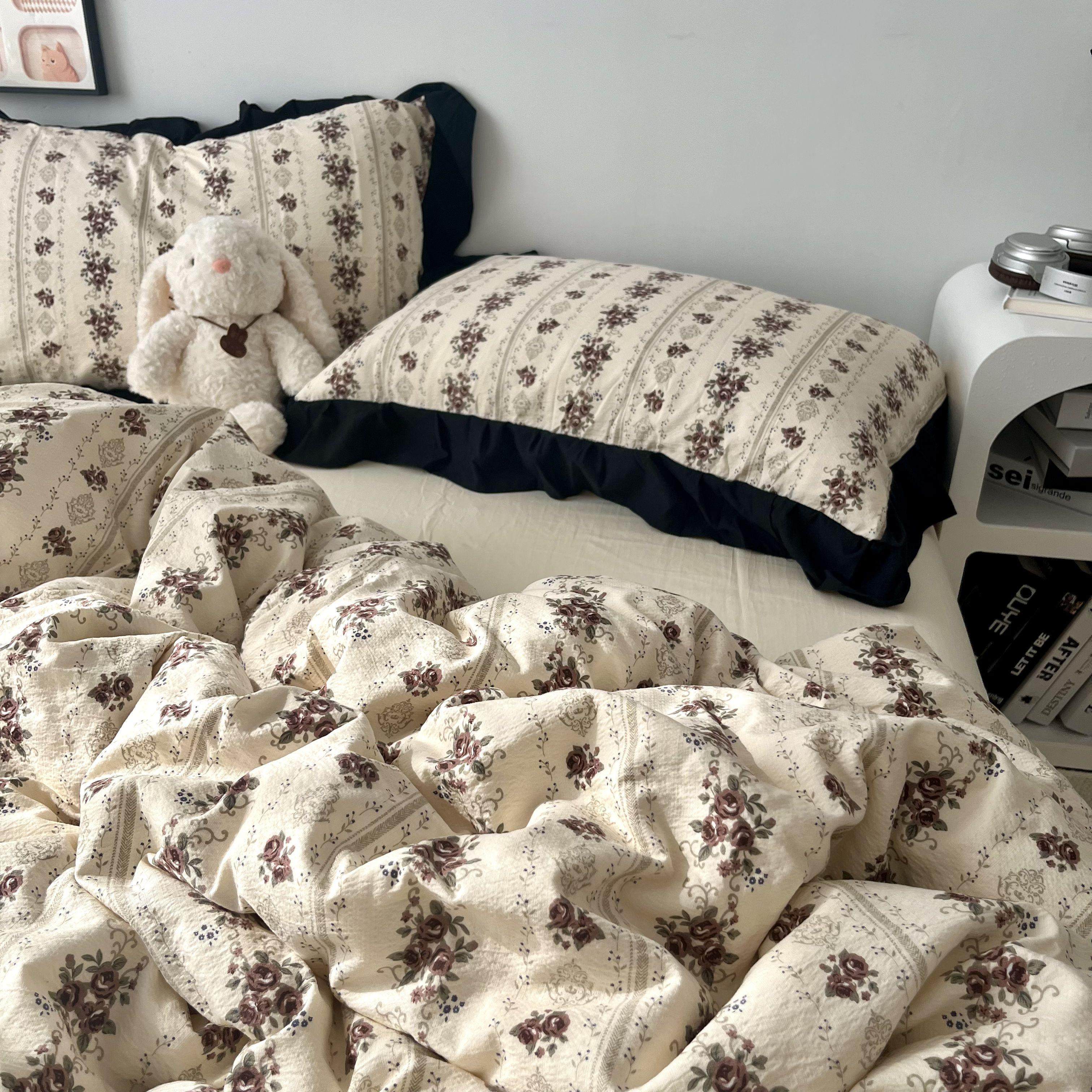 法式 学生三件套 复古少女田园碎花水洗棉床上四件套全棉被套花边款