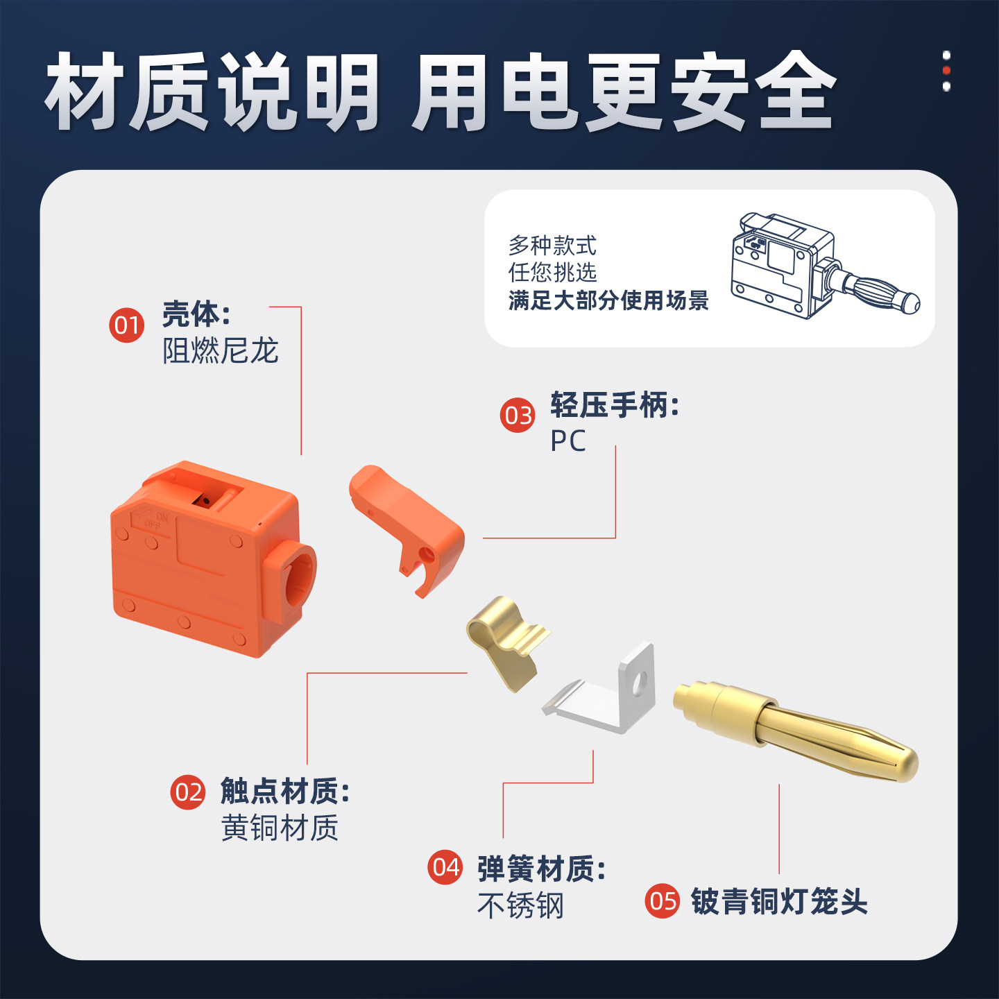 免焊快接香蕉插头四叶插直插镀金镀镍32A按压接线连接器0.2 4mm