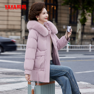 保暖外套S 连帽妈妈装 鸭鸭羽绒服女2025秋冬新款 中老年加厚中长款