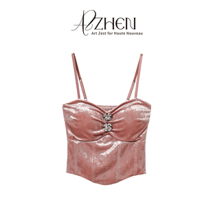 2025秋冬新款 一体杯缎面蕾丝磨毛美背女百搭保暖无痕吊带背心 时尚