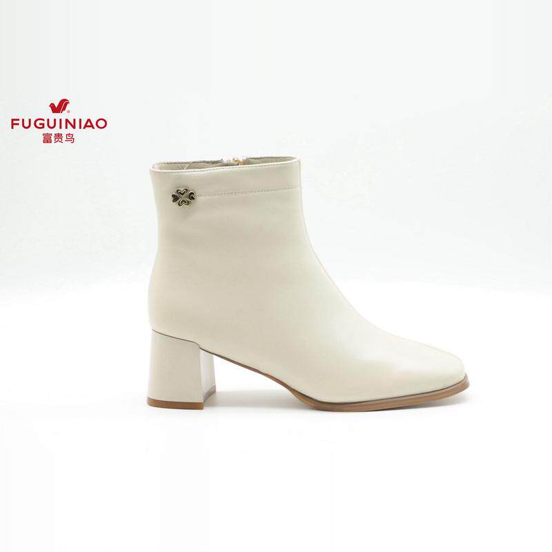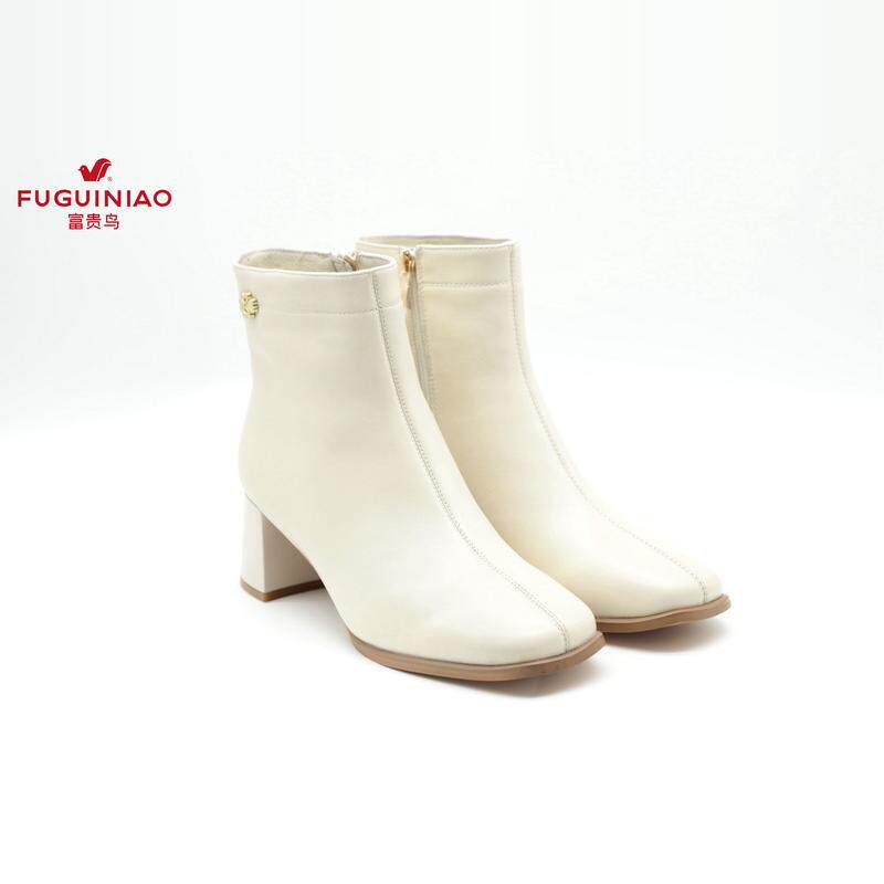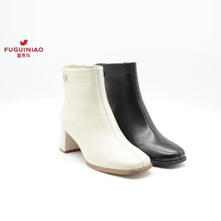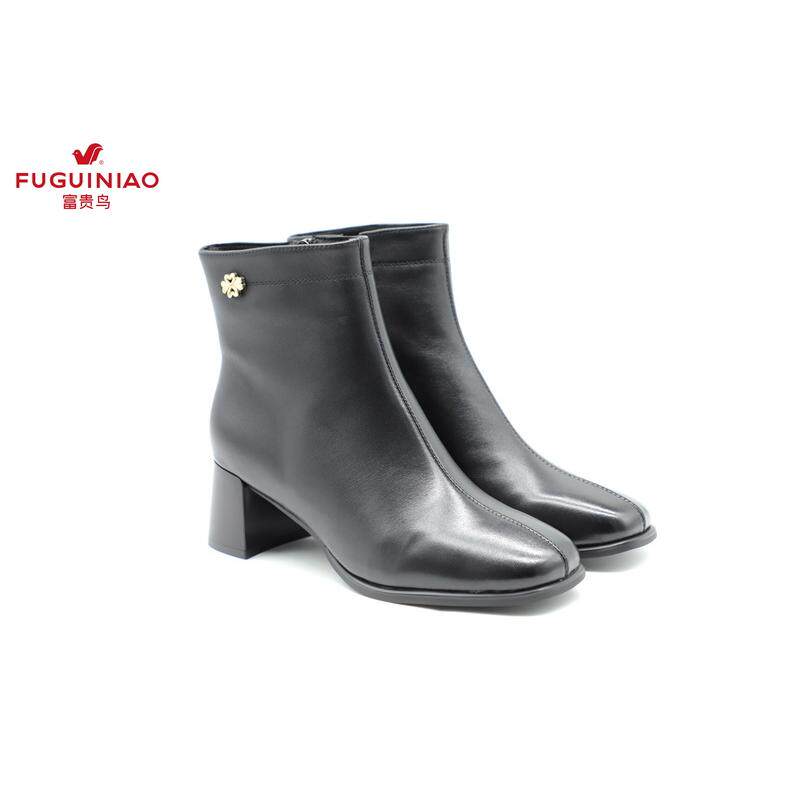 名牌 真皮鞋 富贵鸟品牌女鞋 女靴女士短靴子冬羊皮粗跟商场同款