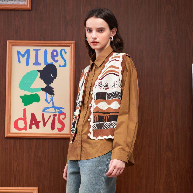 直身衬衣 女春秋长绒棉质感长袖 PATAVINITY简约风格 暗襟休闲衬衫