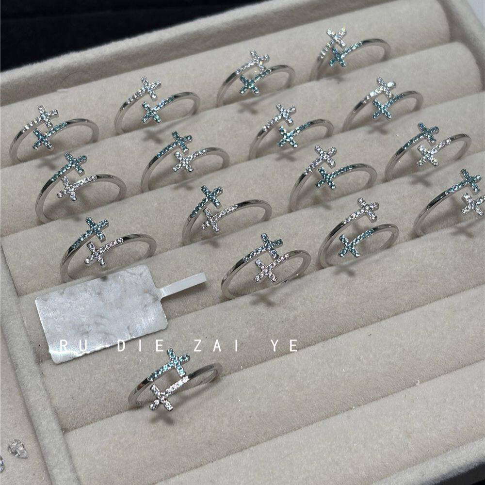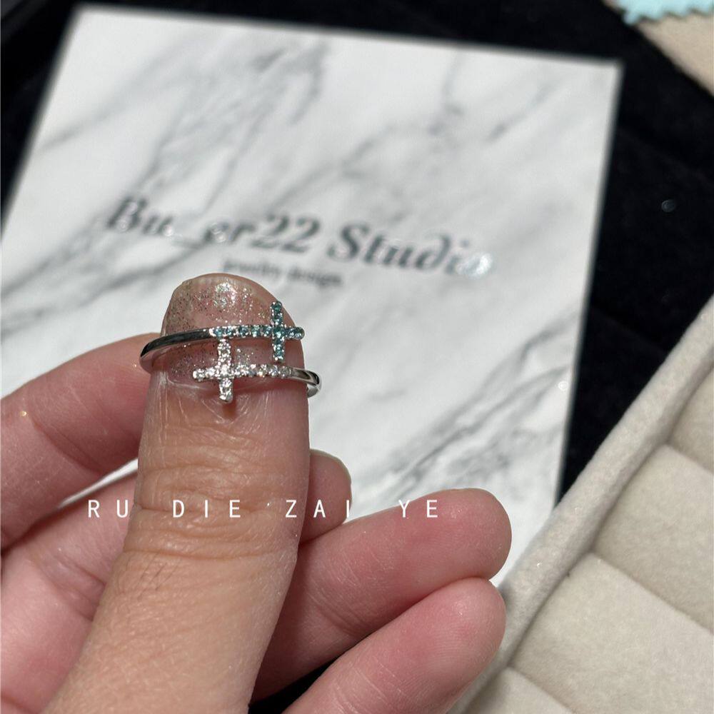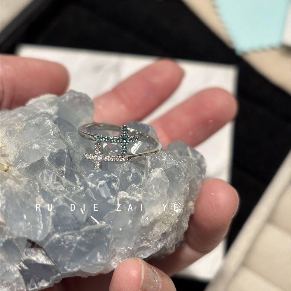 如蝶在野 双层十字架锆石戒指小众设计百搭精致开口戒 圣洁之戒