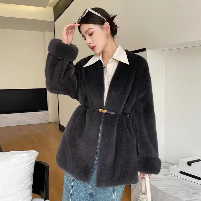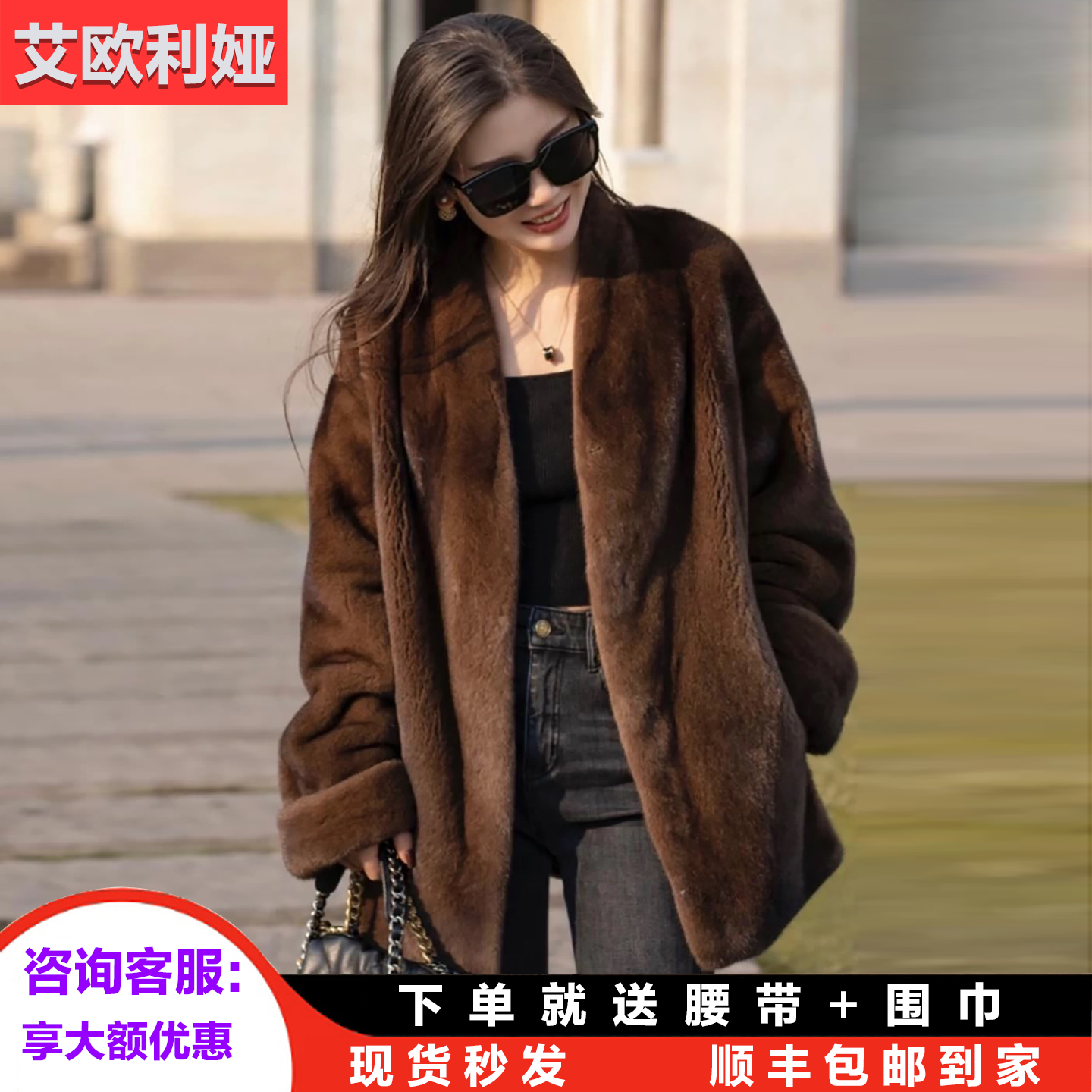 年轻款 中长款 水貂皮草外套 进口貂皮大衣女整貂名媛风挽袖 2025新款