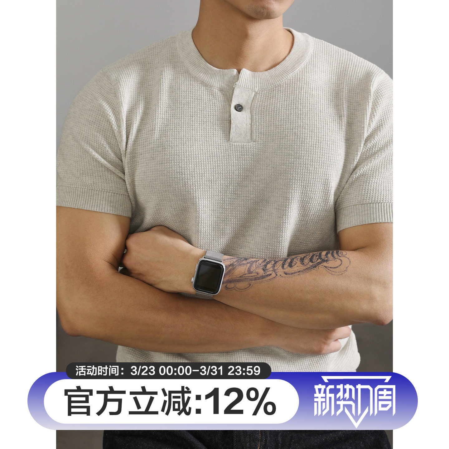 T恤针织衫 短袖 男高级感针织肌理运动休闲体恤上衣 亨利领收袖 LUUD