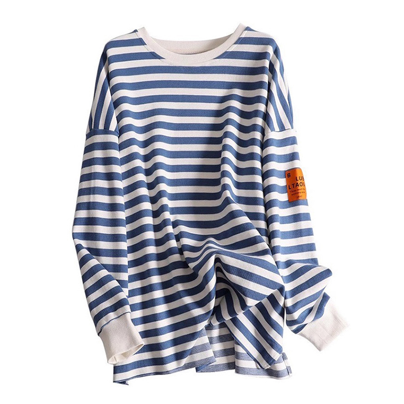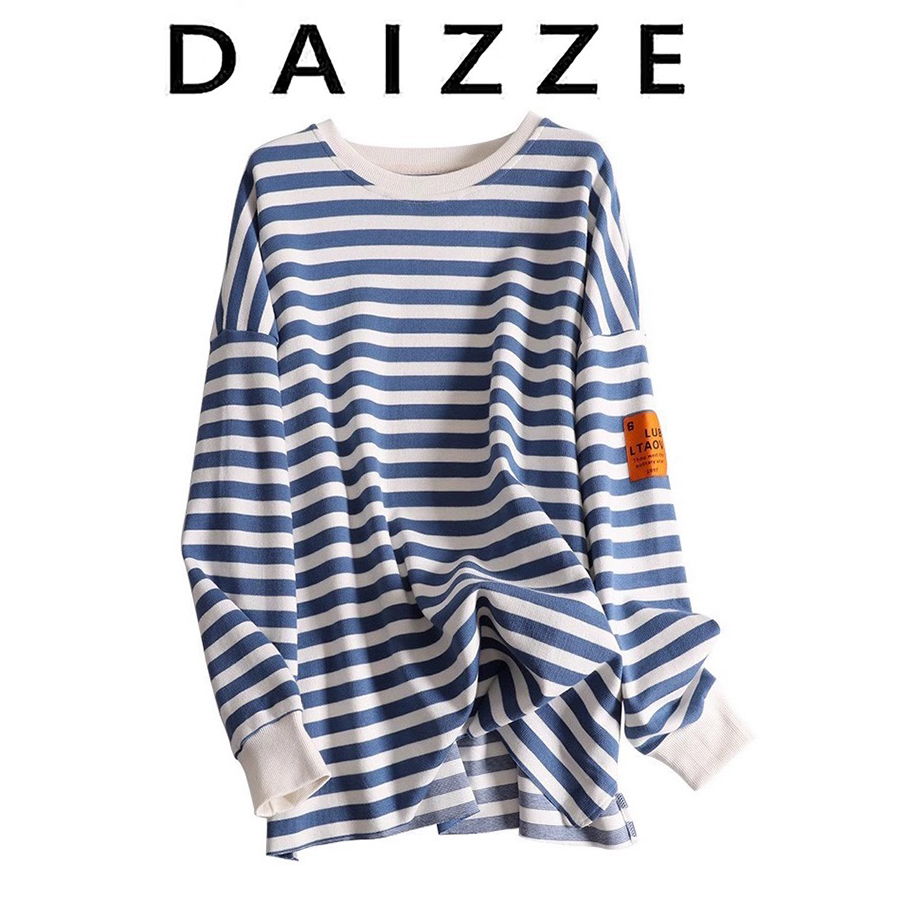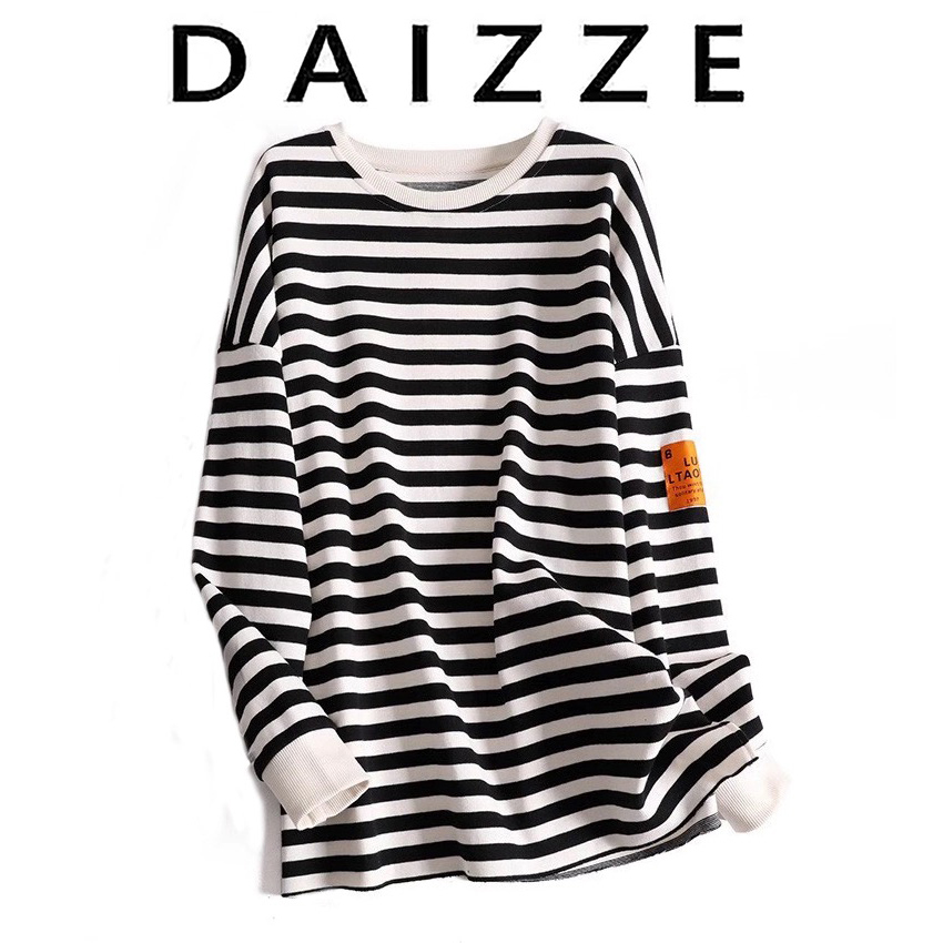 薄款 DAIZZE 宽松洋气条纹套头大码 遮屁股卫衣女春季 T恤上衣 中长款