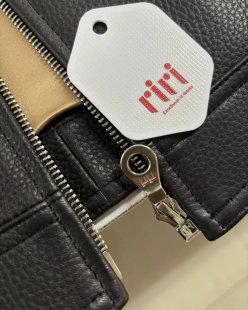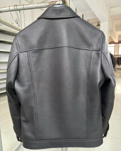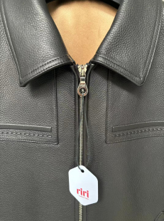 男士 riri拉链真丝桑蚕丝里布 头层鹿皮真皮皮衣翻领夹克黑色