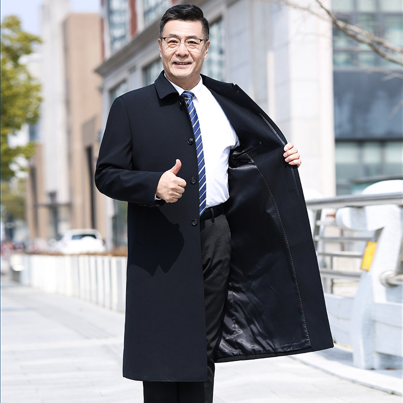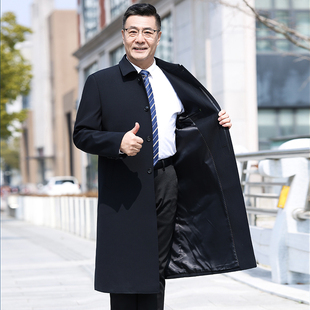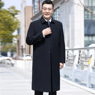 宽松商务休闲外套爸爸装 春秋季 中老年人大衣 过膝风衣中年男士 长款