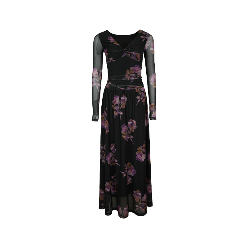 扭结V领气质显瘦长裙女初秋长袖 法式 印花连衣裙 徘徊 酒午自制