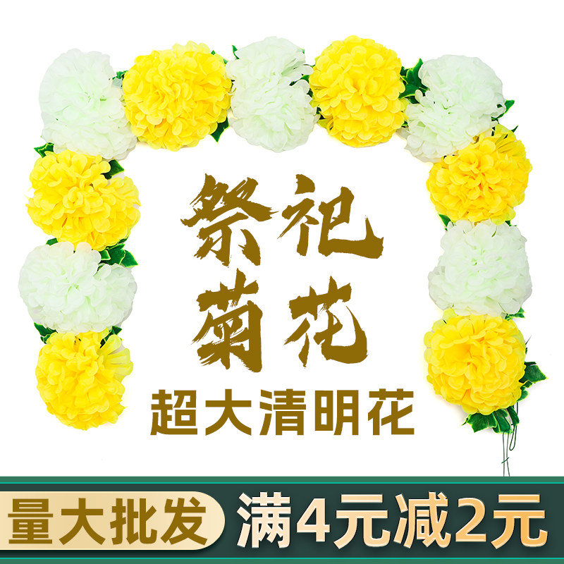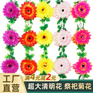 仿真菊花条花藤墓地扫墓碑祭祀挂花装 饰绢花假花塑料拉花清明祭奠