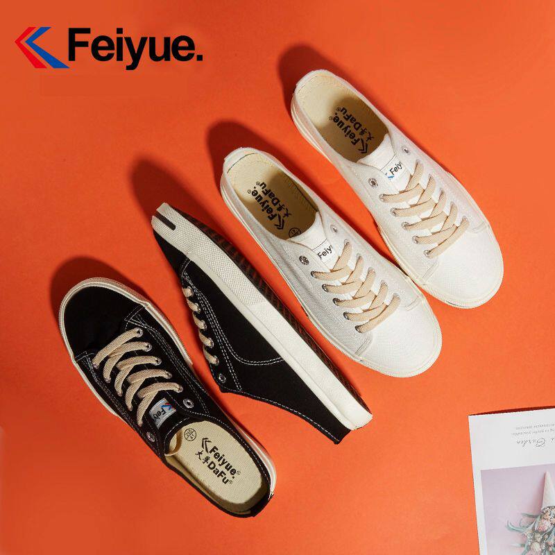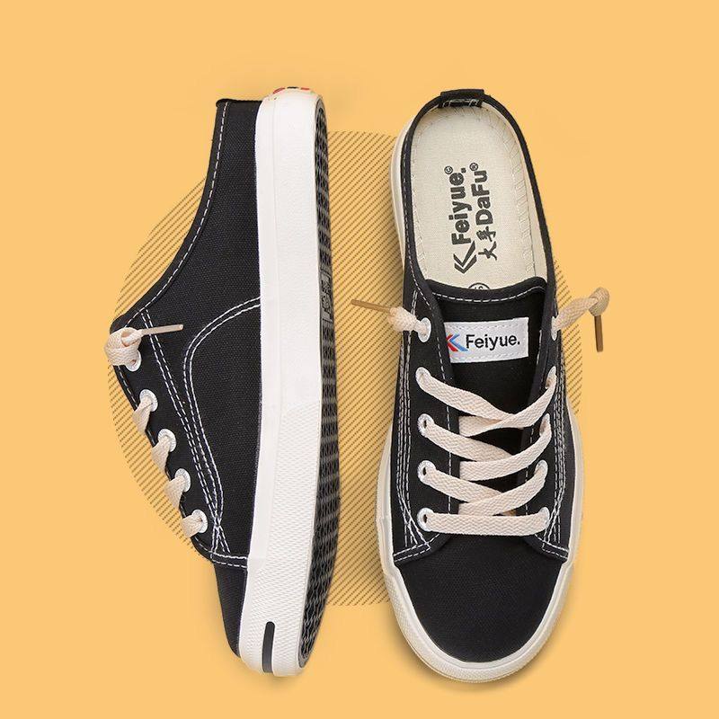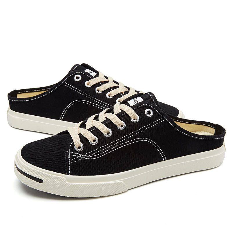 夏季 情侣休闲鞋 开口笑半拖鞋 男女鞋 一脚蹬无后跟懒人鞋 飞跃帆布鞋