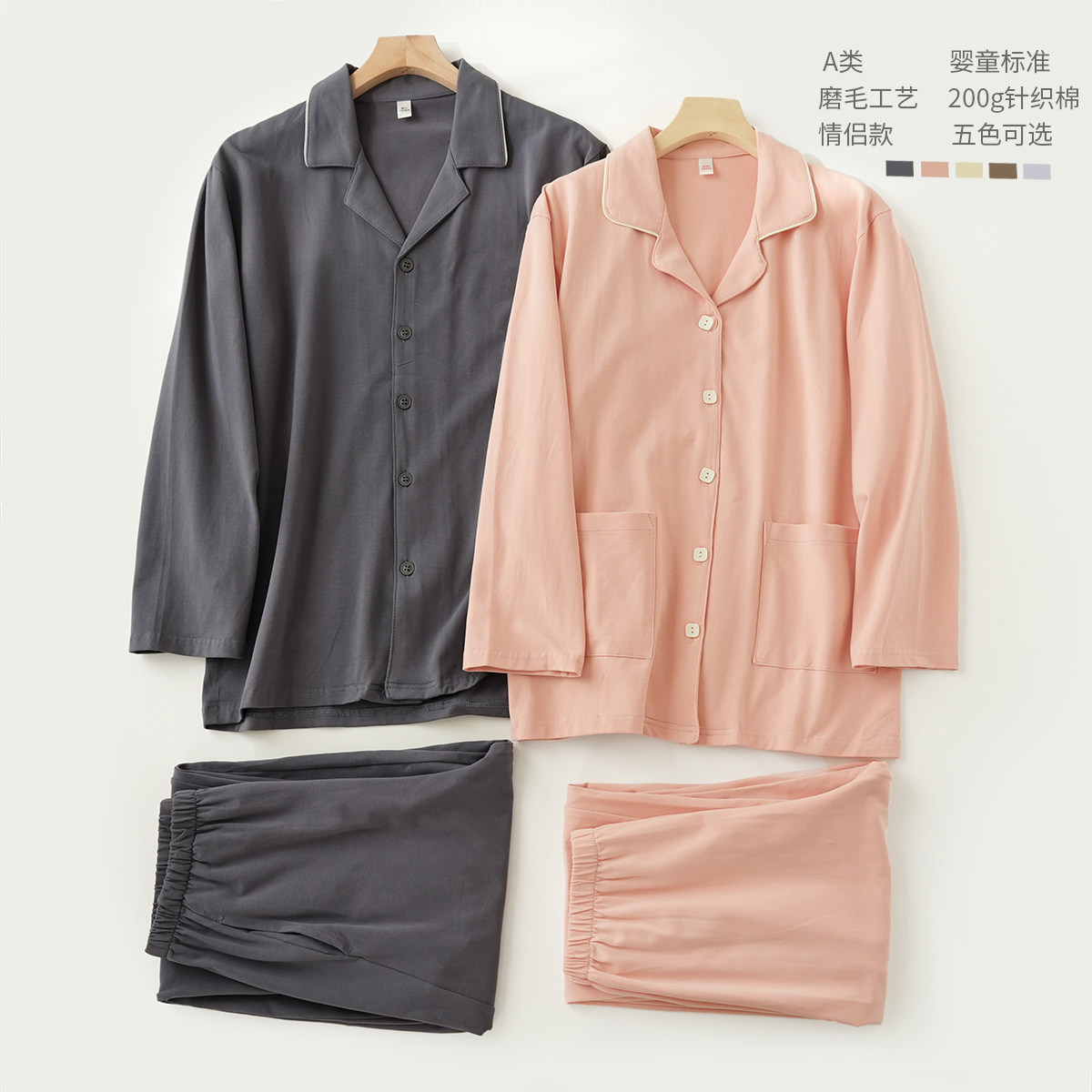 家居服套装 无印品质睡衣女士秋冬纯棉绒布磨毛长袖 格子情侣男士