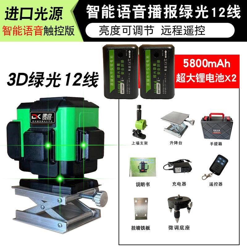 绿光12线水平仪强光16线红外线贴墙贴地仪精度语音瓦工超亮