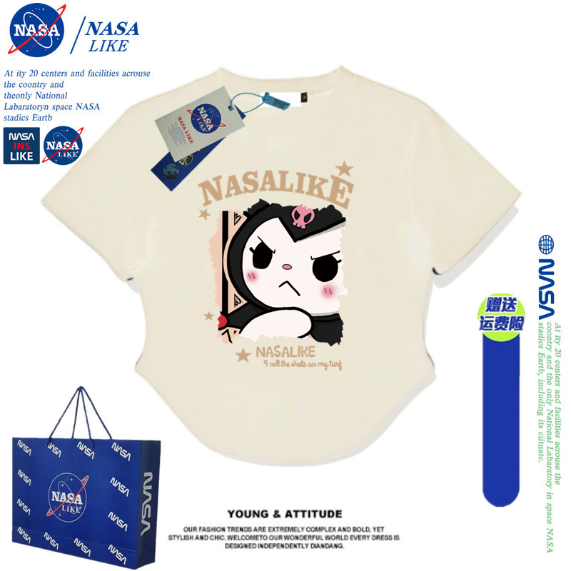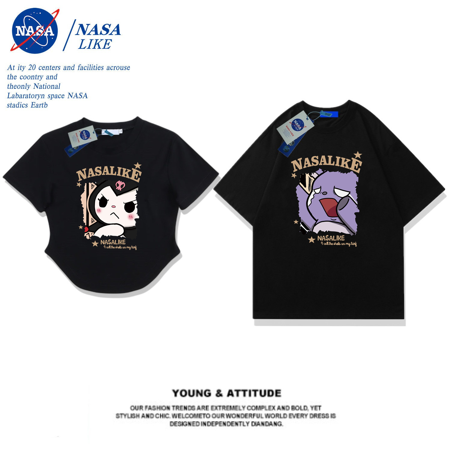 t恤男女短款 纯棉短袖 正肩辣妹上衣 一长一短春夏季 NASA联名情侣装