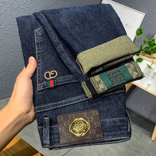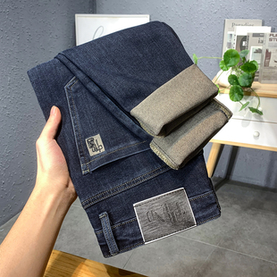 休闲简约长裤 秋冬加绒加厚小直筒裤 子8822 男款 轻奢百搭棉弹牛仔裤