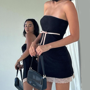蕾丝拼接性感抹胸短裙 小清新设计感蝴蝶结系带连衣裙女 Sisjuly