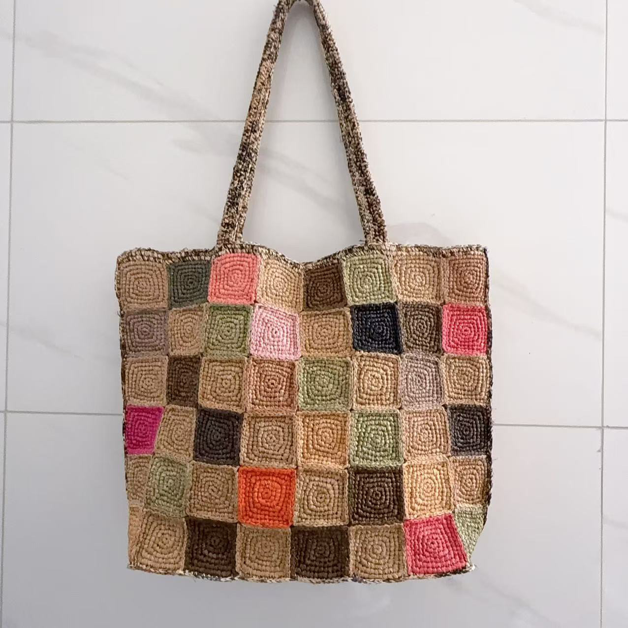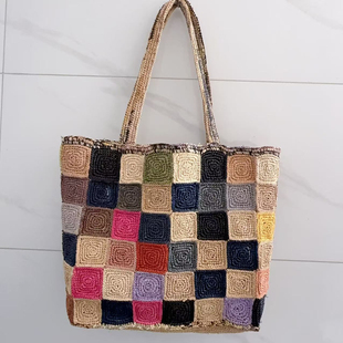 孤品~2025新款 拉菲草包30宫格重工编织肩带单肩包