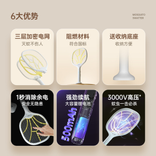 榄菊官方电蚊拍充电式 灭蚊灯灭蝇灯多功能强力电子灭蚊器家用06A