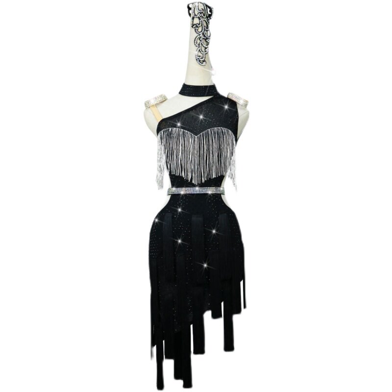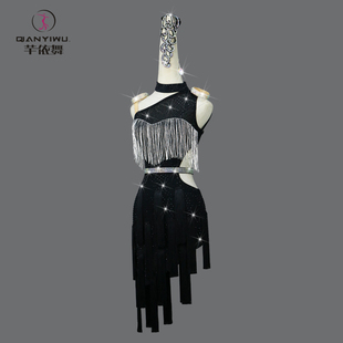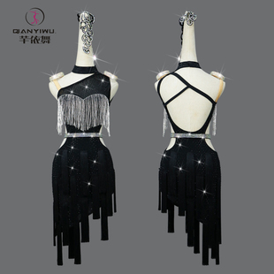 拉丁舞裙表演服女新款 国标舞伦巴比赛连衣裙成人团体演出服流苏裙