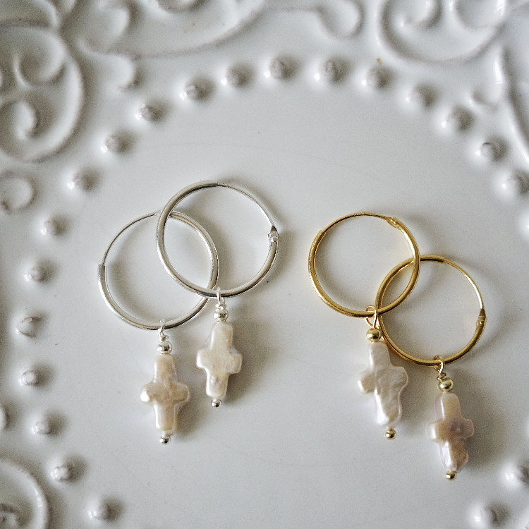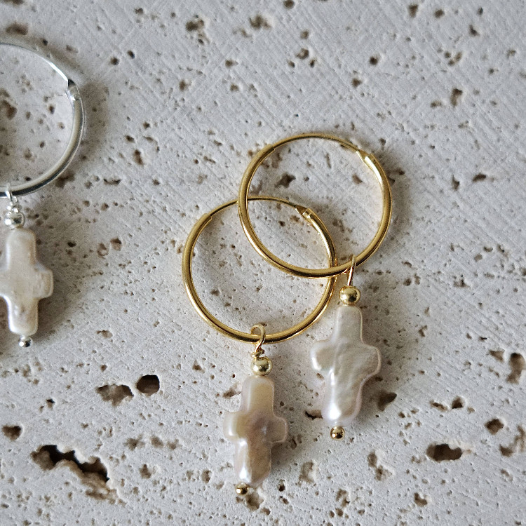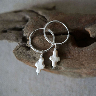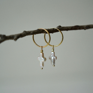 复古小众个性 Faith天然巴洛克珍珠十字架耳环法式 耳坠 Power
