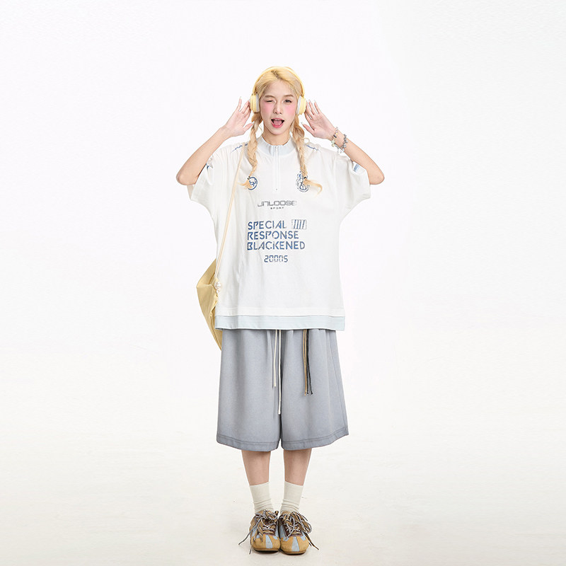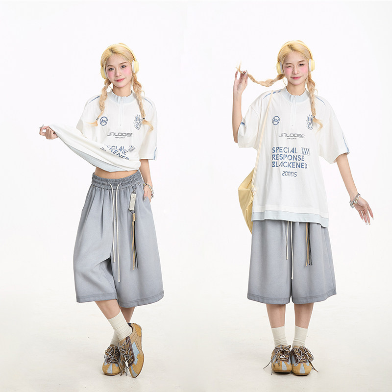 七分裤 女宽松显瘦抽绳挂饰街头休闲阔腿中裤 短裤 NERESUM潮牌美式