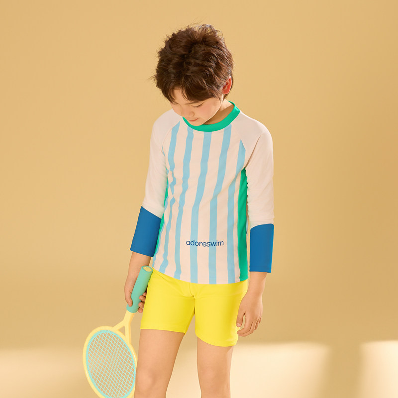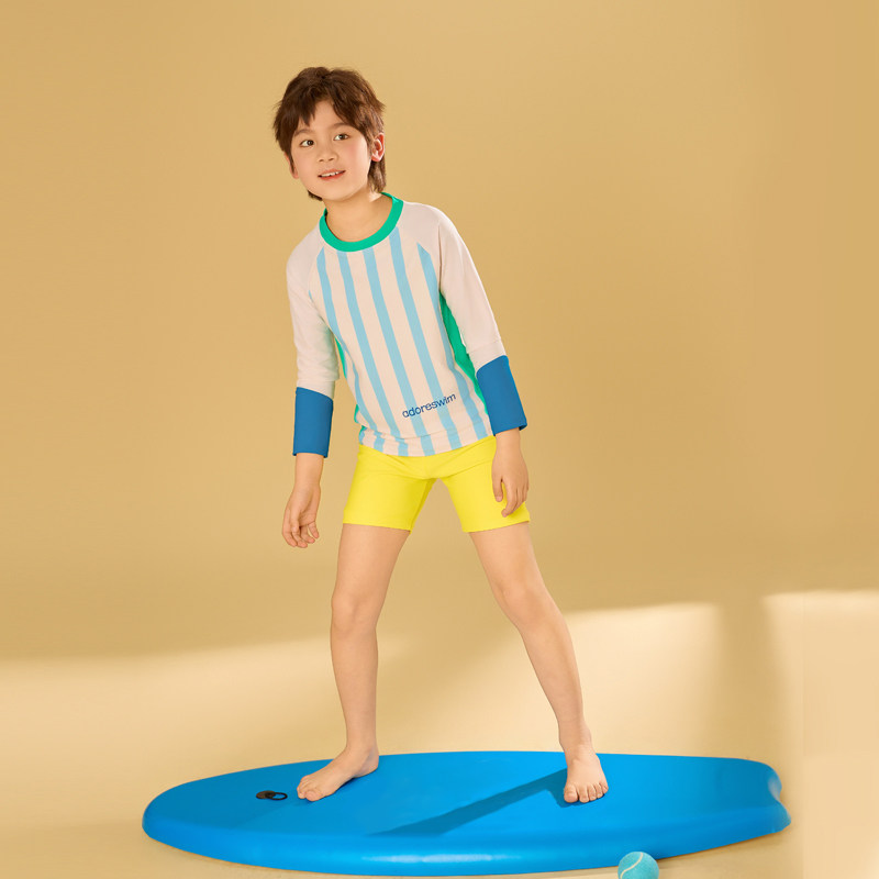 爱多尔2025春夏新款 分体泳衣男童防晒透气条纹舒适 儿童沙滩游泳装