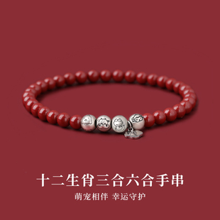 庆祥泰朱砂手串正品 2026属马本命年三合六合男手链 官方旗舰店女款