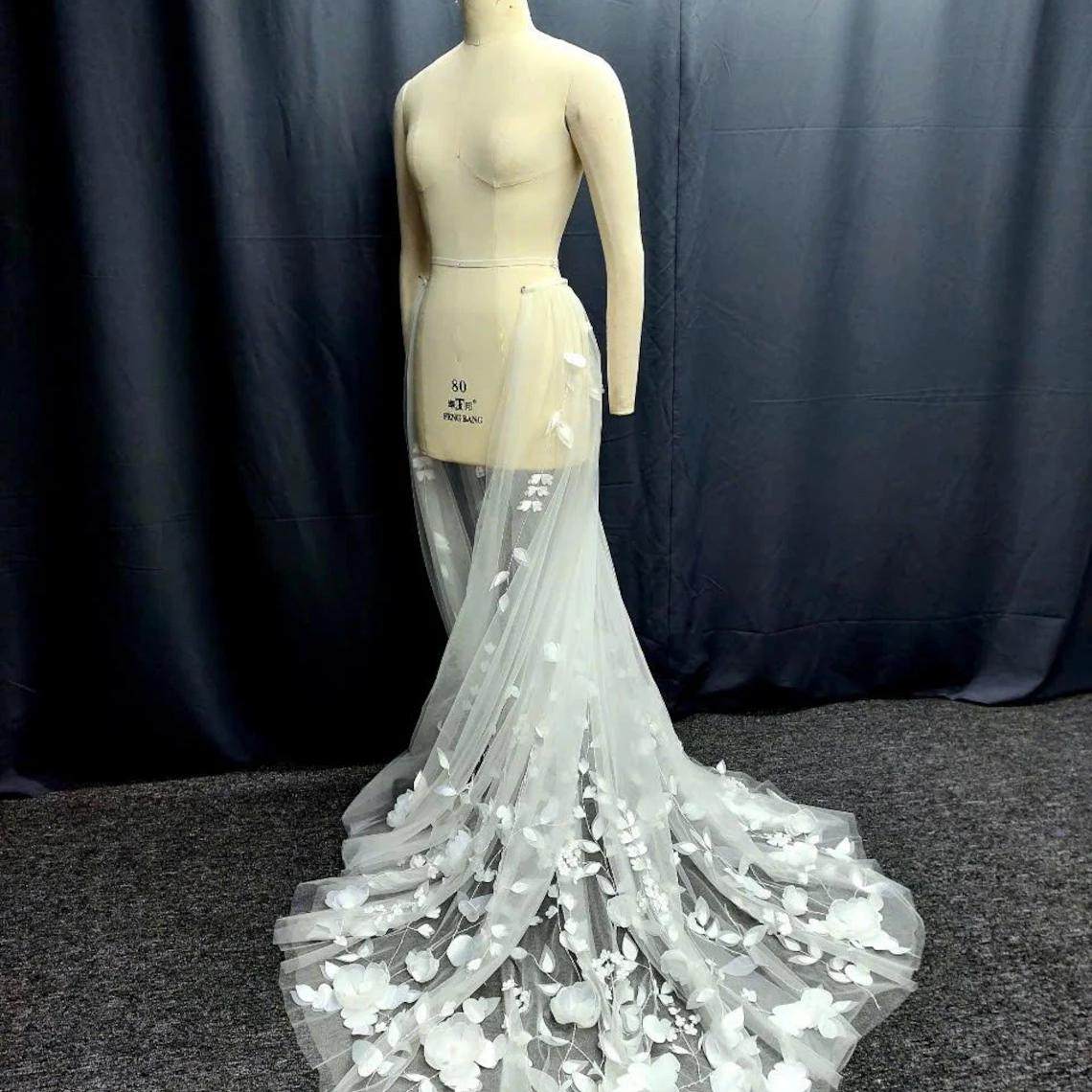 轻婚纱礼服白色蕾丝鱼尾裙修身 旅拍户外草坪婚礼新娘出门纱高端