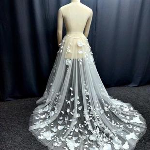 白色轻婚纱礼服女外景拍摄旅拍户外露背拖尾性感开叉蕾丝长裙高端