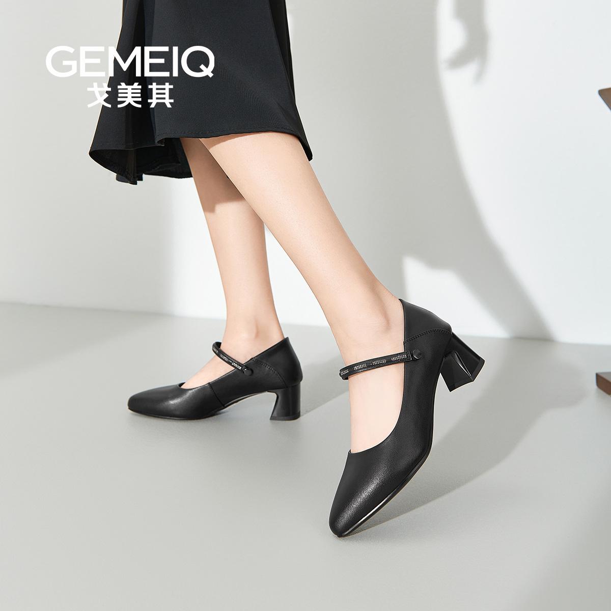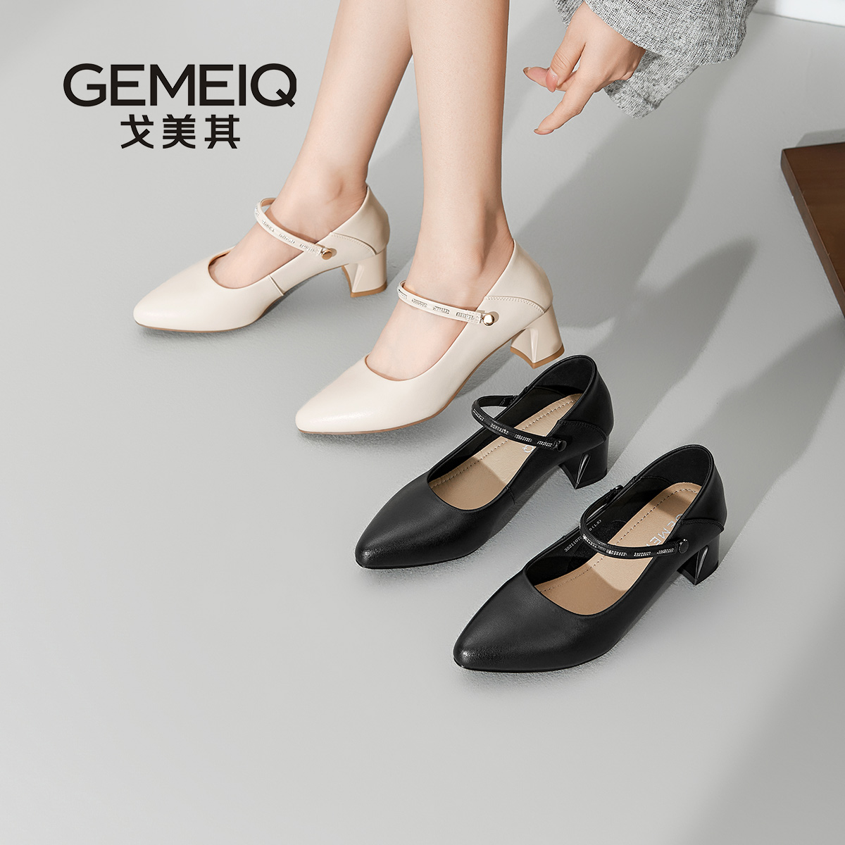 一字带高跟鞋 戈美其2025新款 女浅口尖头粗跟单鞋 玛丽珍鞋 女 法式
