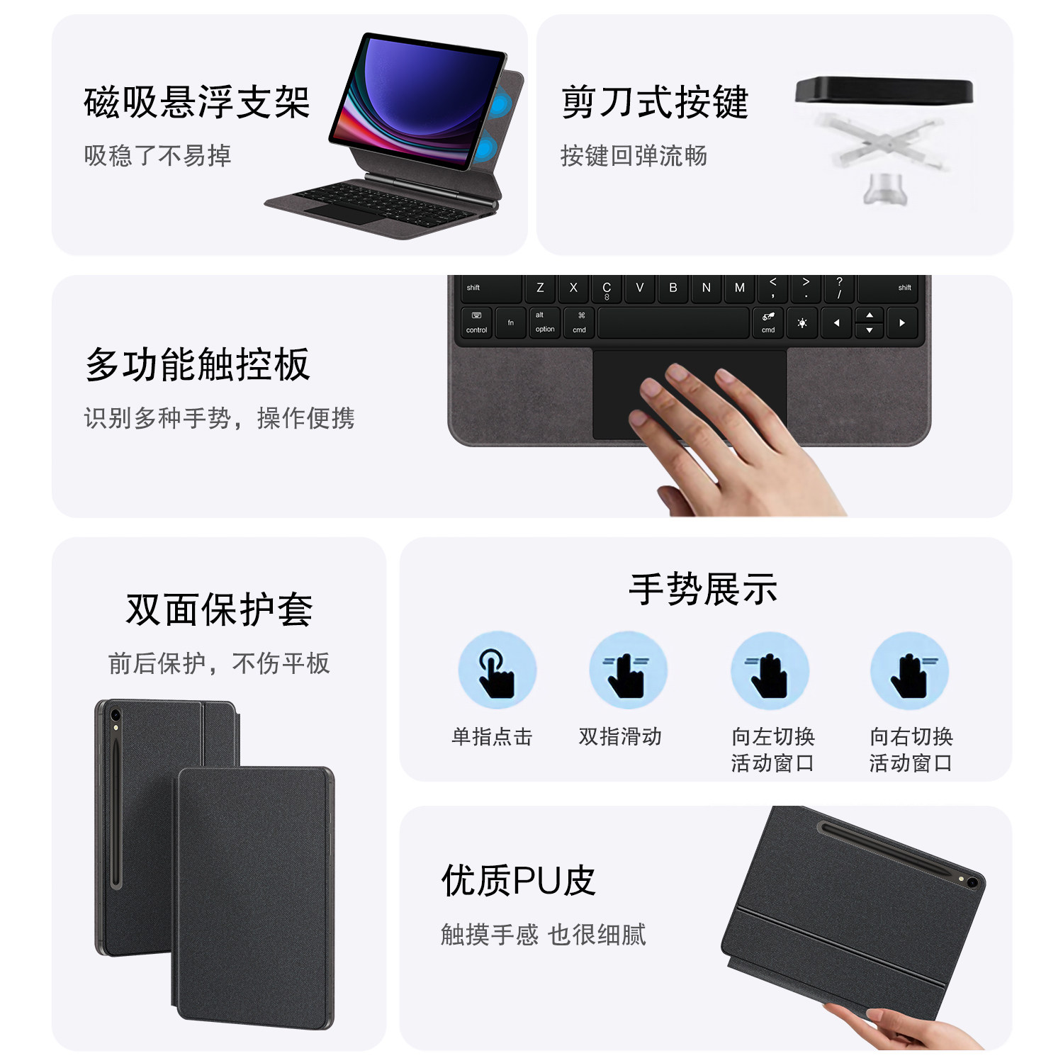 S8平板电脑11英寸s7无线蓝牙键盘鼠标套装 S9磁吸悬浮妙控键盘s9fe触控板一体式 10.9 tab 久宇适用三星galaxy