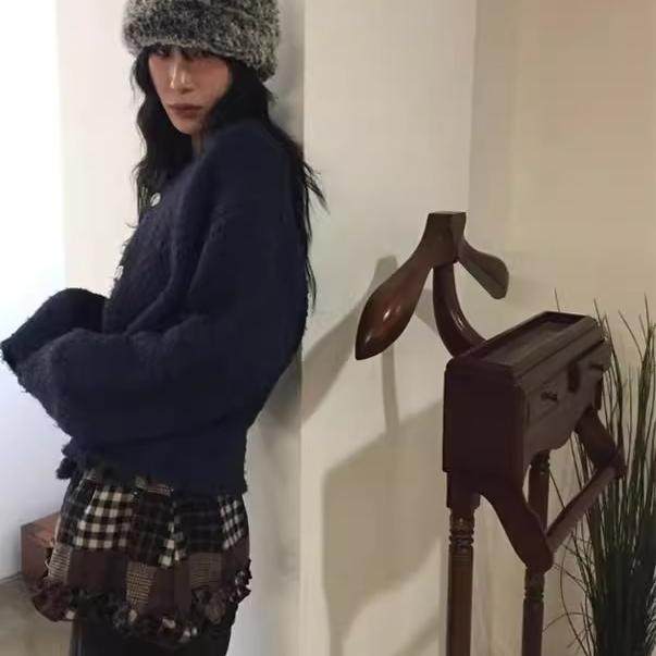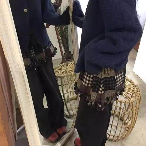 Exclusive 复古多色格纹拼色设计小裙摆叠穿罩裙短裙 type韩国个性