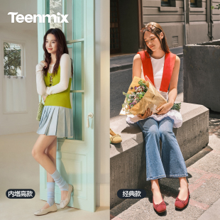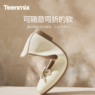 平底鞋 天美意彩虹软糖软底浅口单鞋 红色小皮鞋 女新款 芭蕾玛丽珍鞋