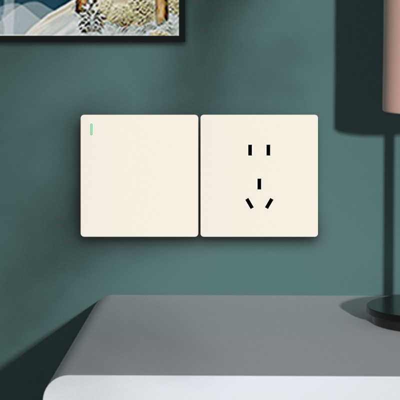 国际电工家用奶油风哑光开关插座暗装 暖黄 面板五孔墙壁奶咖色套装