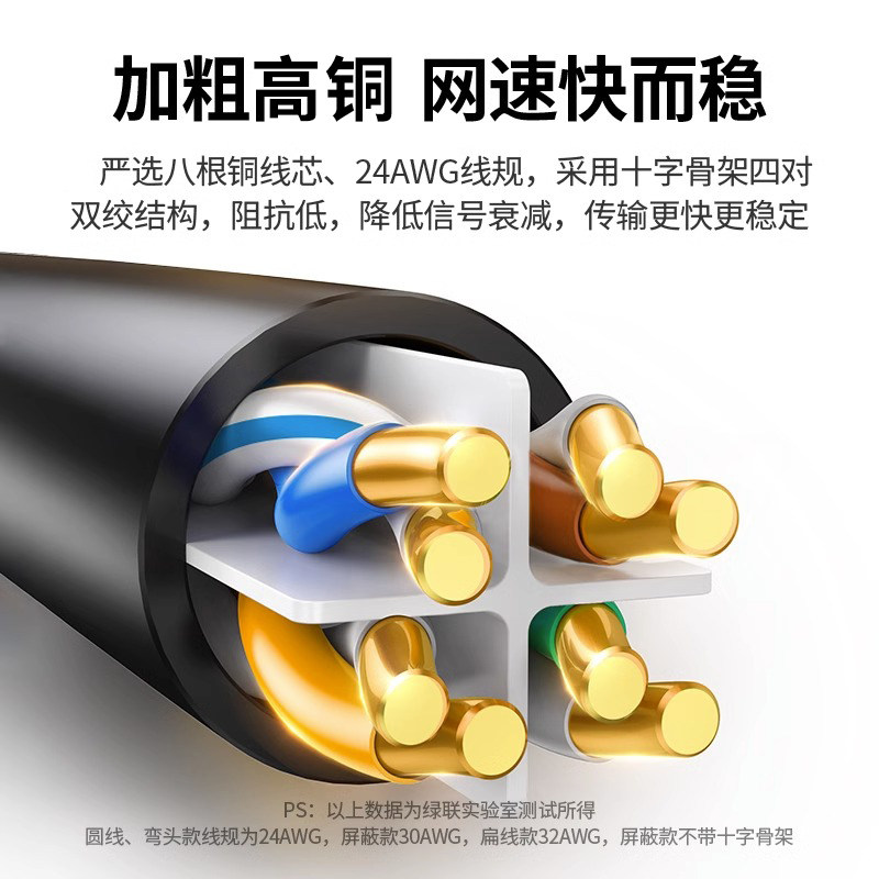 绿联网线六类千兆cat6超5笔记本电脑路由器连接对接双头高速成品高铜线网络宽带线带水晶头跳线超家用10 20米