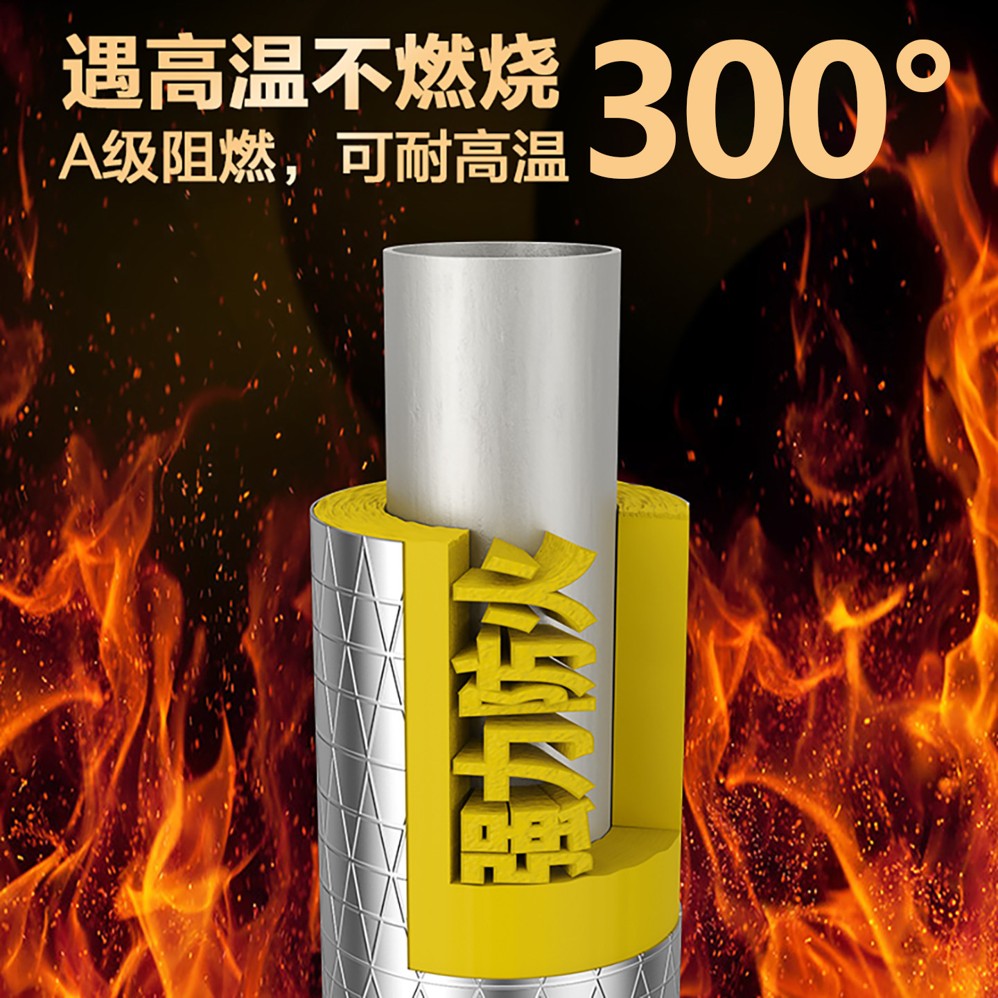 蒸汽管道玻璃棉保温管套棉锅炉耐高温防火隔热岩棉开口铝箔材料