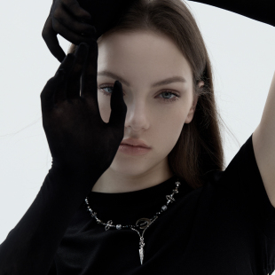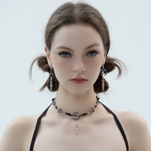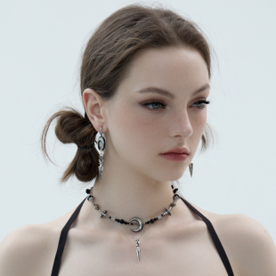BING古城系列 原创小众设计中性酷月亮吊坠做旧复古项链耳环女