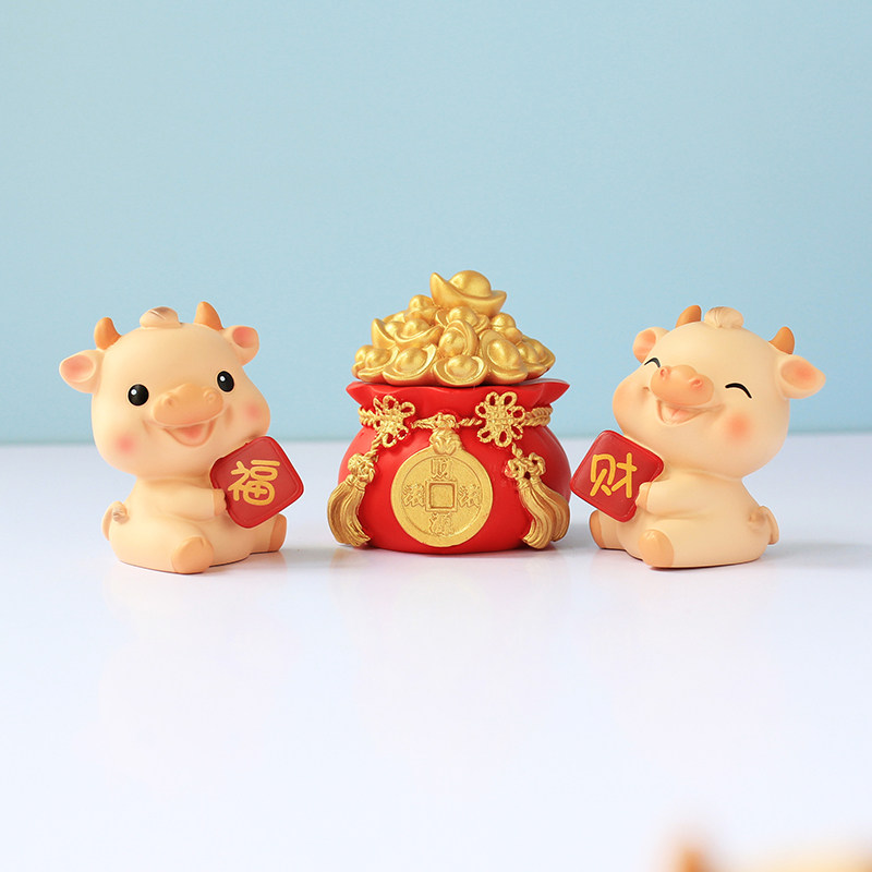 阿牛生肖小牛公仔摆件摆放工位电脑桌机箱装 饰汽车中控台摆设礼物
