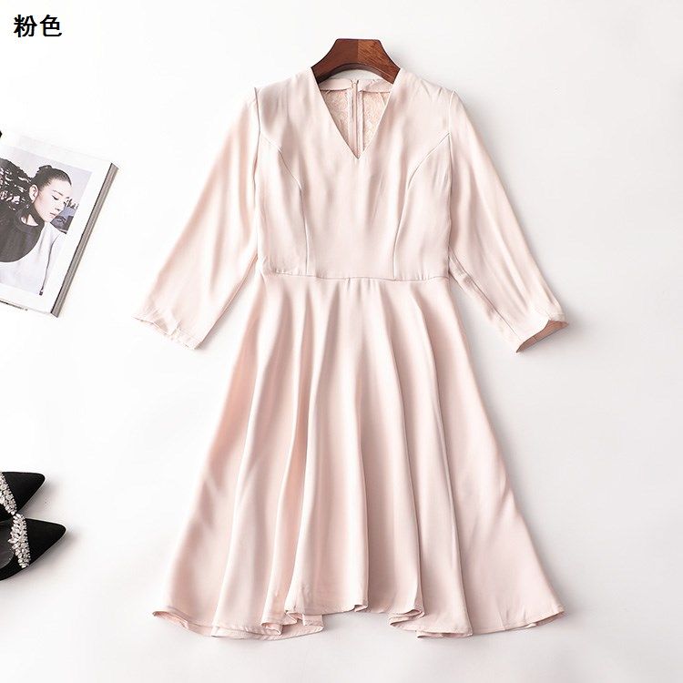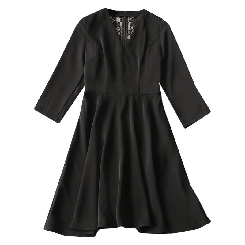 V领断码 235060 九分袖 女蕾丝长款 清仓 秋尼龙连衣裙