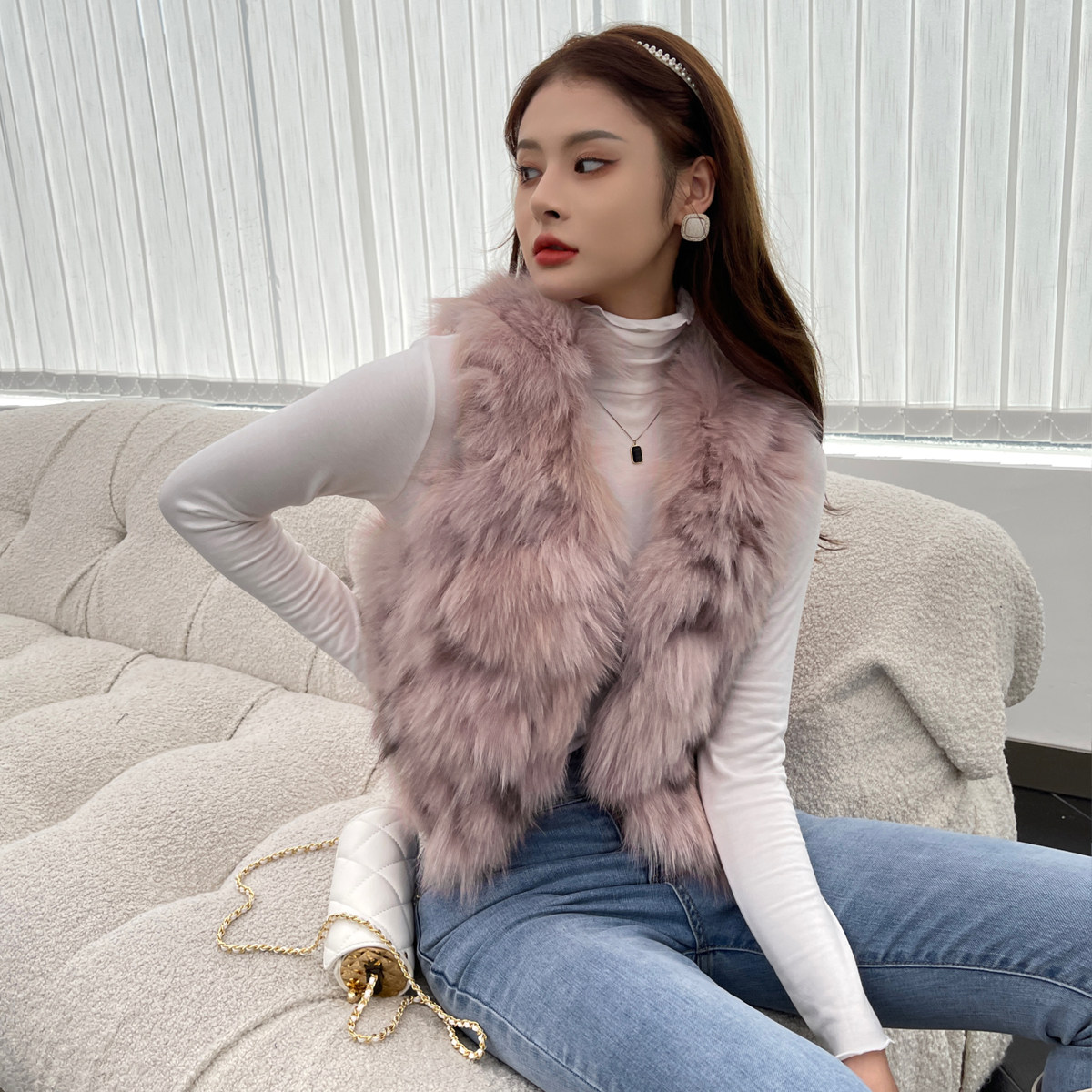 今年流行 短款 皮毛一体背心外套外穿加厚秋冬季 皮草马甲女年轻款