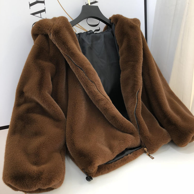 新冬皮草加厚毛茸茸可爱连帽一体小熊耳朵水貂皮羊羔毛短款 外套女